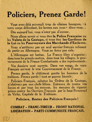 Collection : Musée de la Résistance nationale, Champigny-sur-Marne - Type d'objet : Tract - Date: 1944 - Dimensions : 19.1*24.1